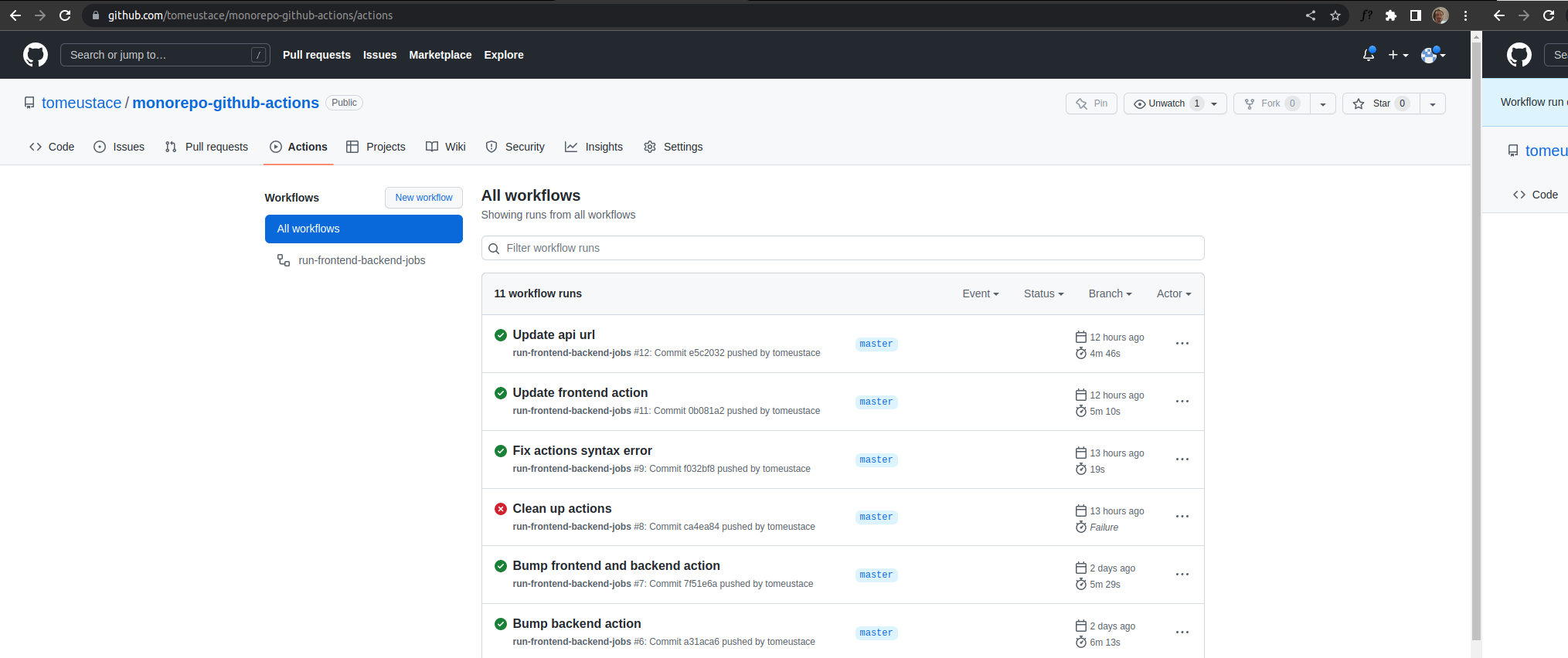 When you push updates to your repository you should see the actions being triggered as shown below.