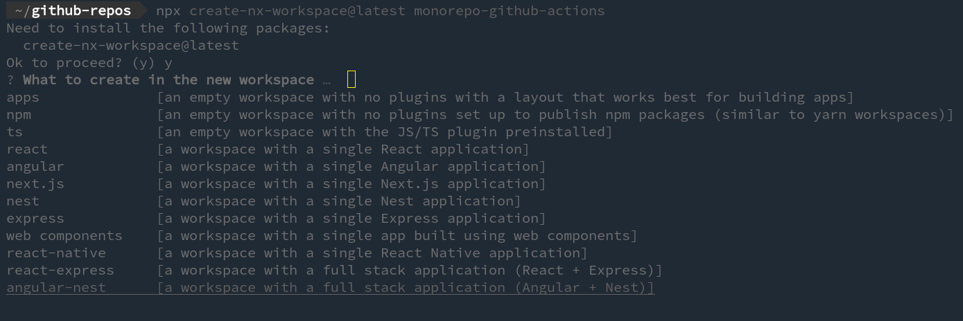 npx create-nx-workspace@latest monorepo-github-actions